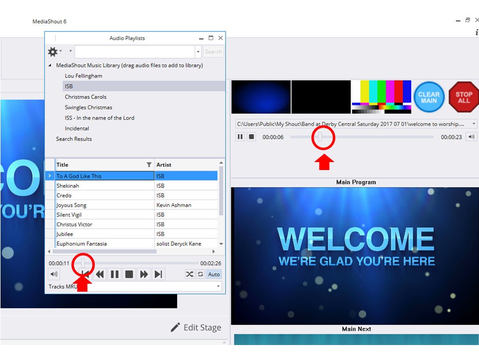When playing media from a cue the progress bar in the top right of the screen shows a slider moving along.