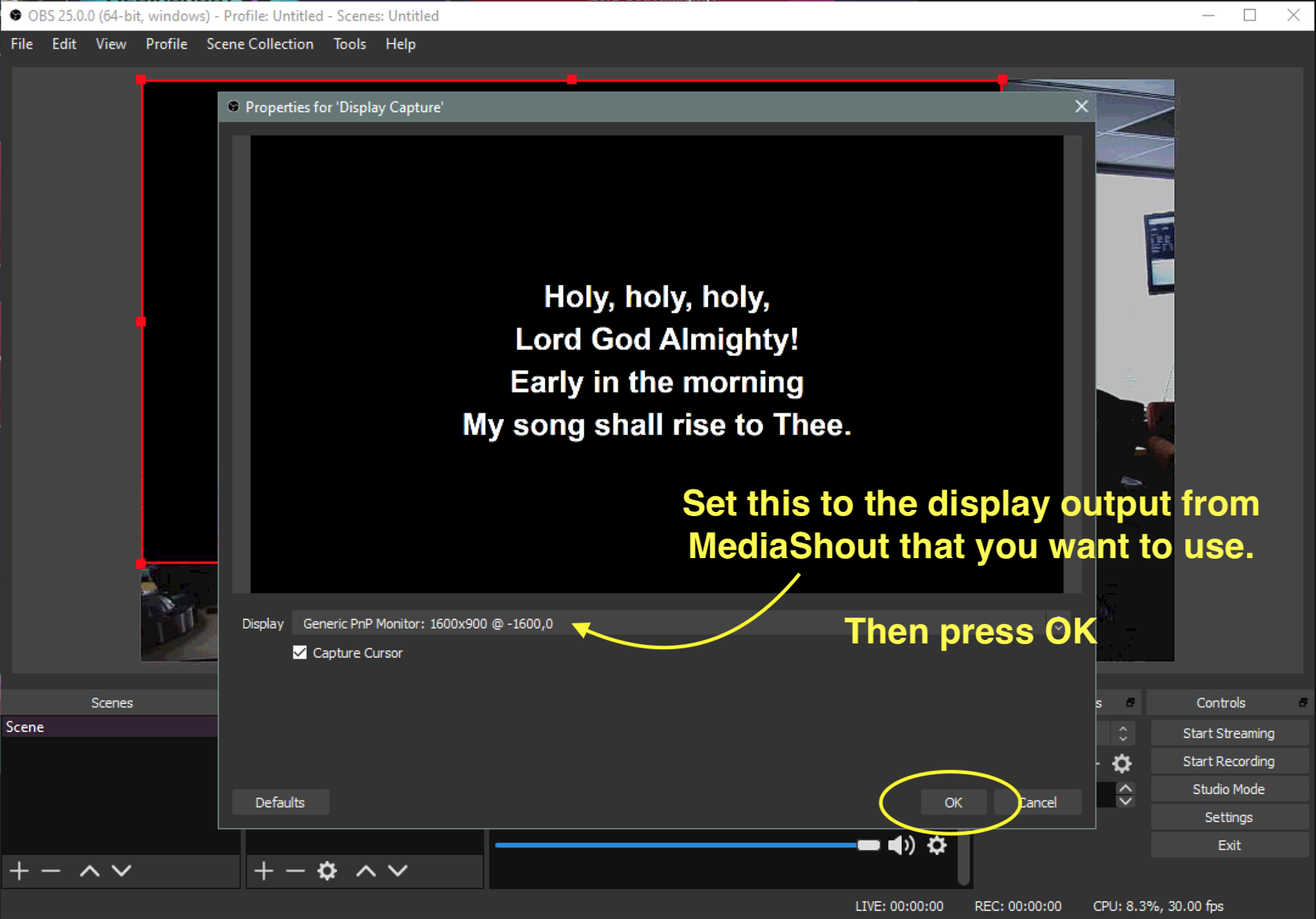 Watch the recording of a webinar on using OBS with MediaShout on YouTube: Click here